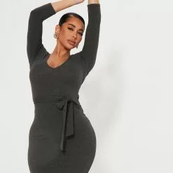 Fashion Nova In The Long Run Midi Dress – Charcoal