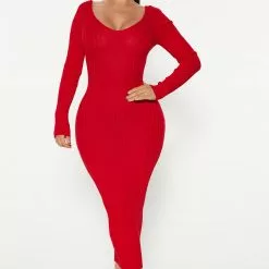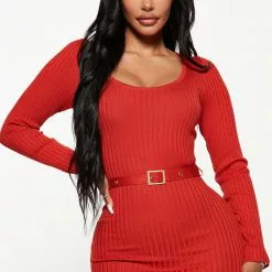 Fashion Nova Kallan Knit Dress – Red