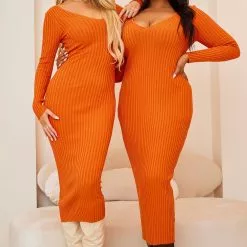 Fashion Nova Kallan Knit Dress – Orange