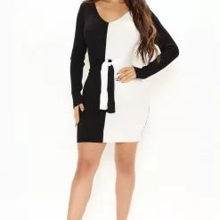 Fashion Nova Autumn Falls Sweater Mini Dress – Black/combo