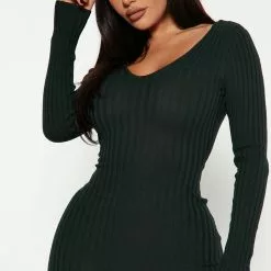 Fashion Nova Kallan Knit Dress – Hunter Green