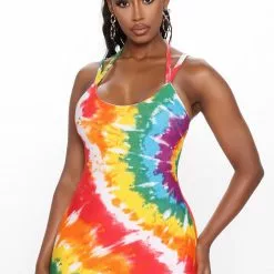 Fashion Nova Caelyn Tie Dye Mini Dress – Rust/combo