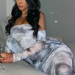 Fashion Nova Celestial Body Tie Dye Mini Dress Set – Navy/combo