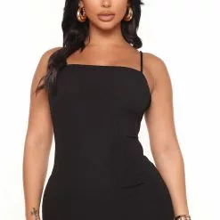 Fashion Nova Serenity Dreams Ribbed Mini Dress – Black