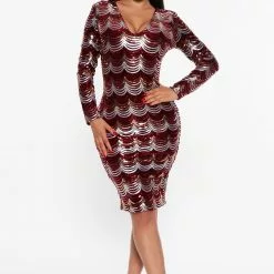 Fashion Nova Always Blessed Sequin Midi Dress – Burgundy