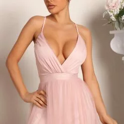 Fashion Nova Mesh Overlay Maxi Dress – Blush