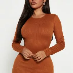 Fashion Nova Monika Ribbed Midi Dress – Cognac