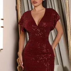 Fashion Nova One Last Dance Sequin Maxi Dress – Burgundy