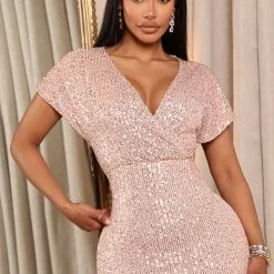 Fashion Nova One Last Dance Sequin Maxi Dress – Champagne