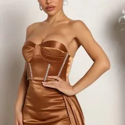 Fashion Nova Royal Highness Satin Maxi Dress – Copper