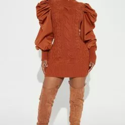 Fashion Nova Sass And Class Sweater Mini Dress – Rust