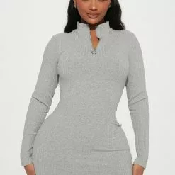 Fashion Nova Running Late Midi Dress – Heather Grey