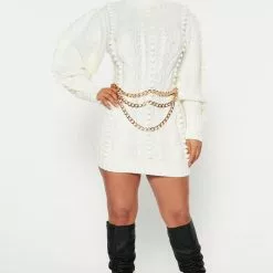 Fashion Nova Sassy Secret Sweater Mini Dress – Ivory