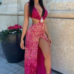 Fashion Nova Samira Sequin Maxi Dress – Fuchsia/combo