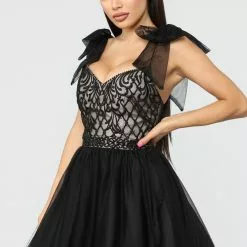 Fashion Nova Wild Hearts Distressed Mini Dress – Black