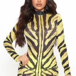 Fashion Nova Willa Crinkled Mini Dress – Yellow/combo