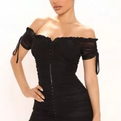 Fashion Nova Ariel Mesh Mini Dress – Black