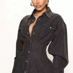 Fashion Nova Street Mood Denim Midi Dress – Black