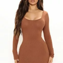 Fashion Nova Find Me Later Midi Dress – Chocolate