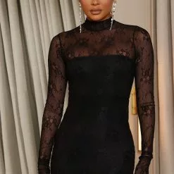 Fashion Nova Portofino Gloved Lace Maxi Dress – Black