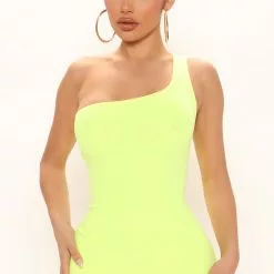 Fashion Nova CeCe One Shoulder Mini Dress – Neon Yellow
