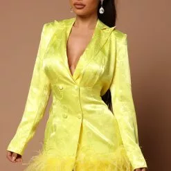 Fashion Nova Brianna Feathered Blazer Dress – Neon Yellow
