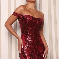 Fashion Nova Close Up Ready Sequin Maxi Dress – Burgundy