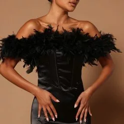 Fashion Nova Hanalei Feather Maxi Dress – Black