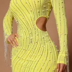 Fashion Nova Belinda Embellished Mini Dress – Neon Yellow