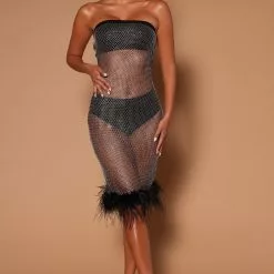 Fashion Nova Aria Crystal Mini Dress – Black