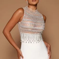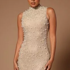 Fashion Nova Katlyn Embellished Mini Dress – Nude