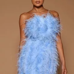 Fashion Nova Lorina Feather Mini Dress – Blue