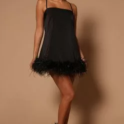 Fashion Nova Lilah Feather Trim Square Neck Mini Dress – Black