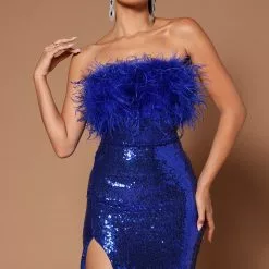 Fashion Nova Justine Sequin Feather Midi Dress – Royal