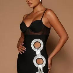 Fashion Nova Sofiya Embellished Dress – Black