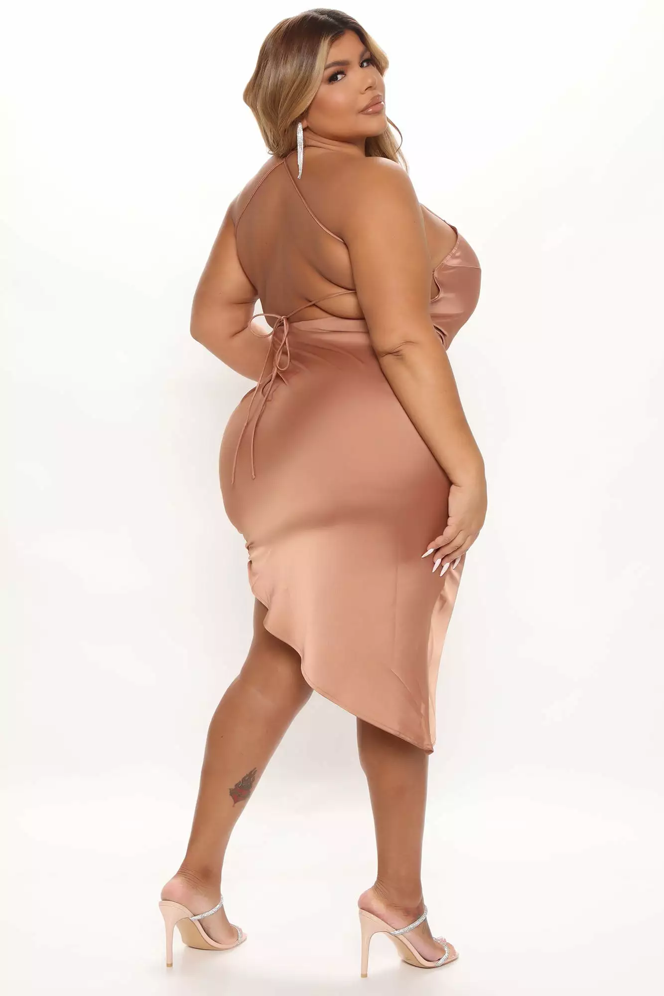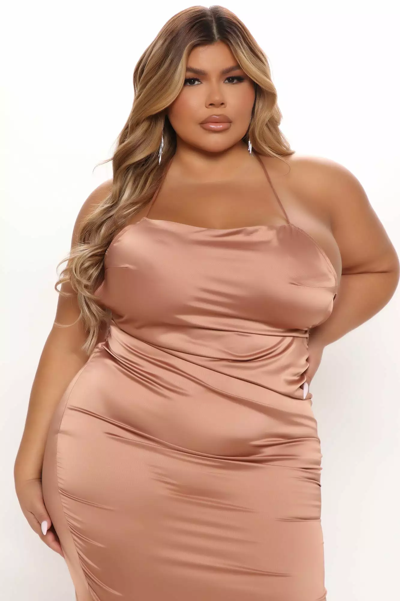 Fashion Nova Pure Heart Satin Midi Dress – Brown