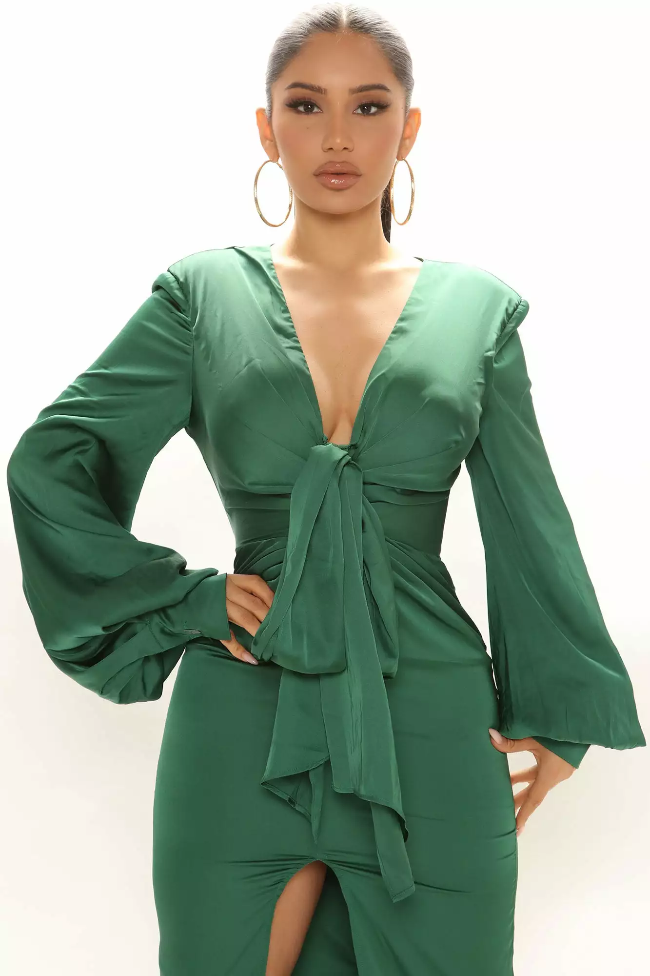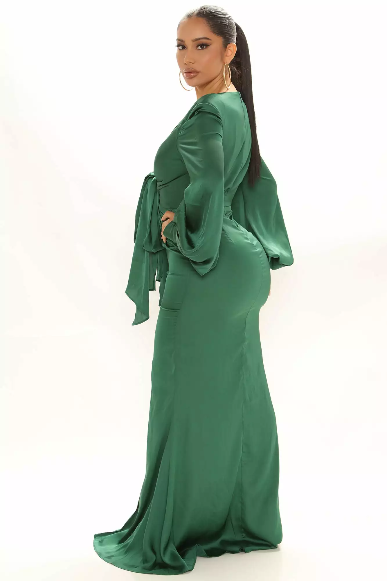 Fashion Nova Queen Moment Satin Maxi Dress – Hunter