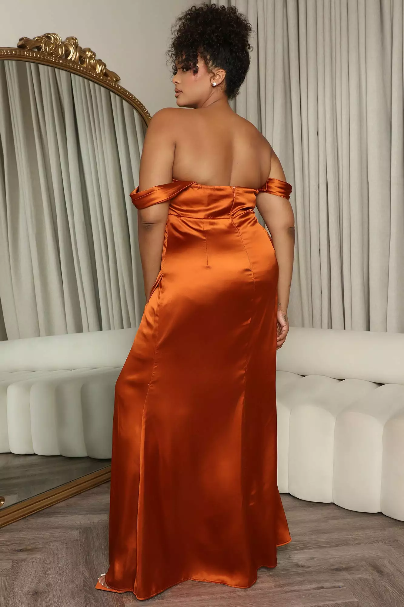 Fashion Nova Raise A Toast Satin Maxi Dress – Rust