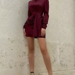 Fashion Nova Raise Your Glass Satin Mini Dress – Red/Brown