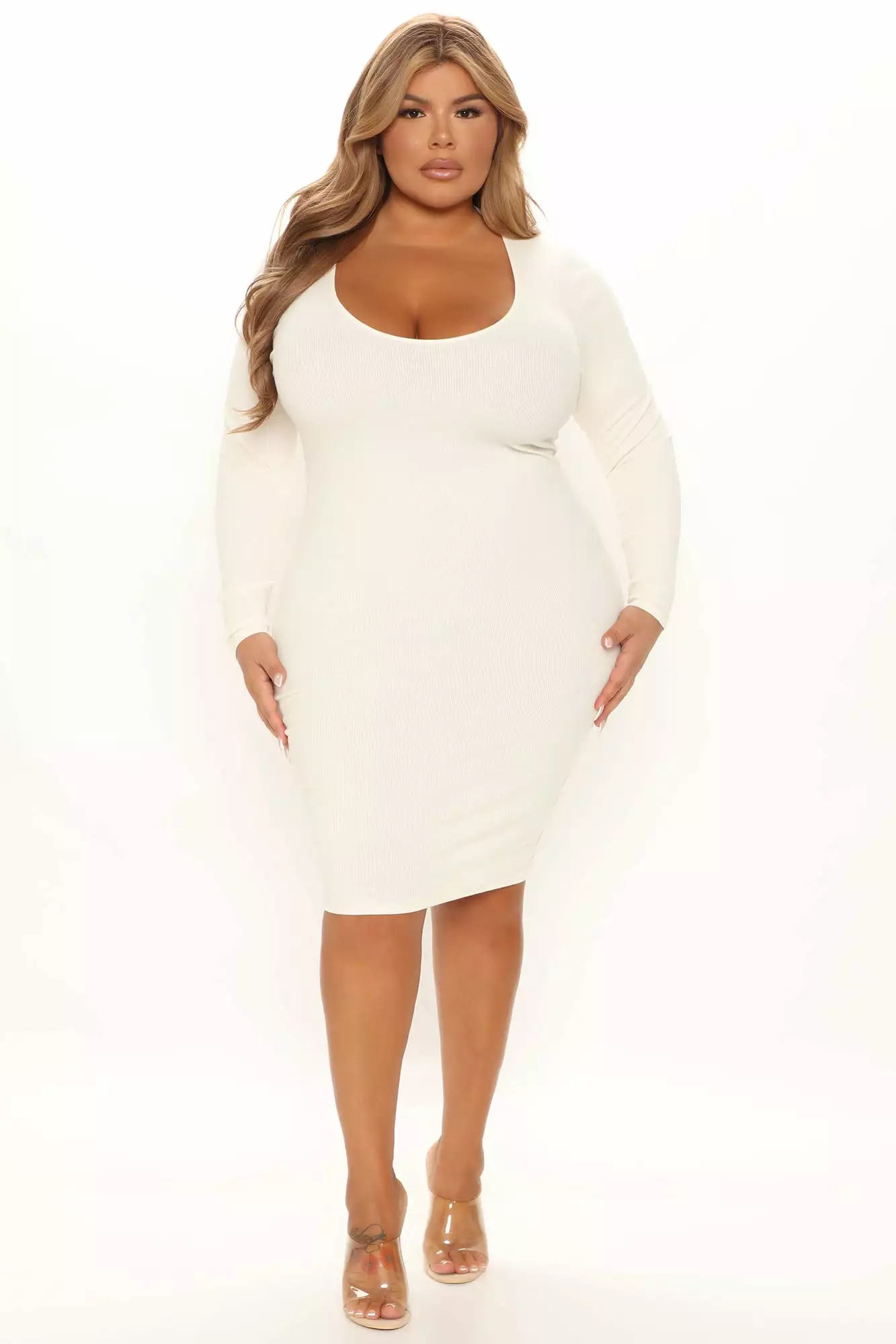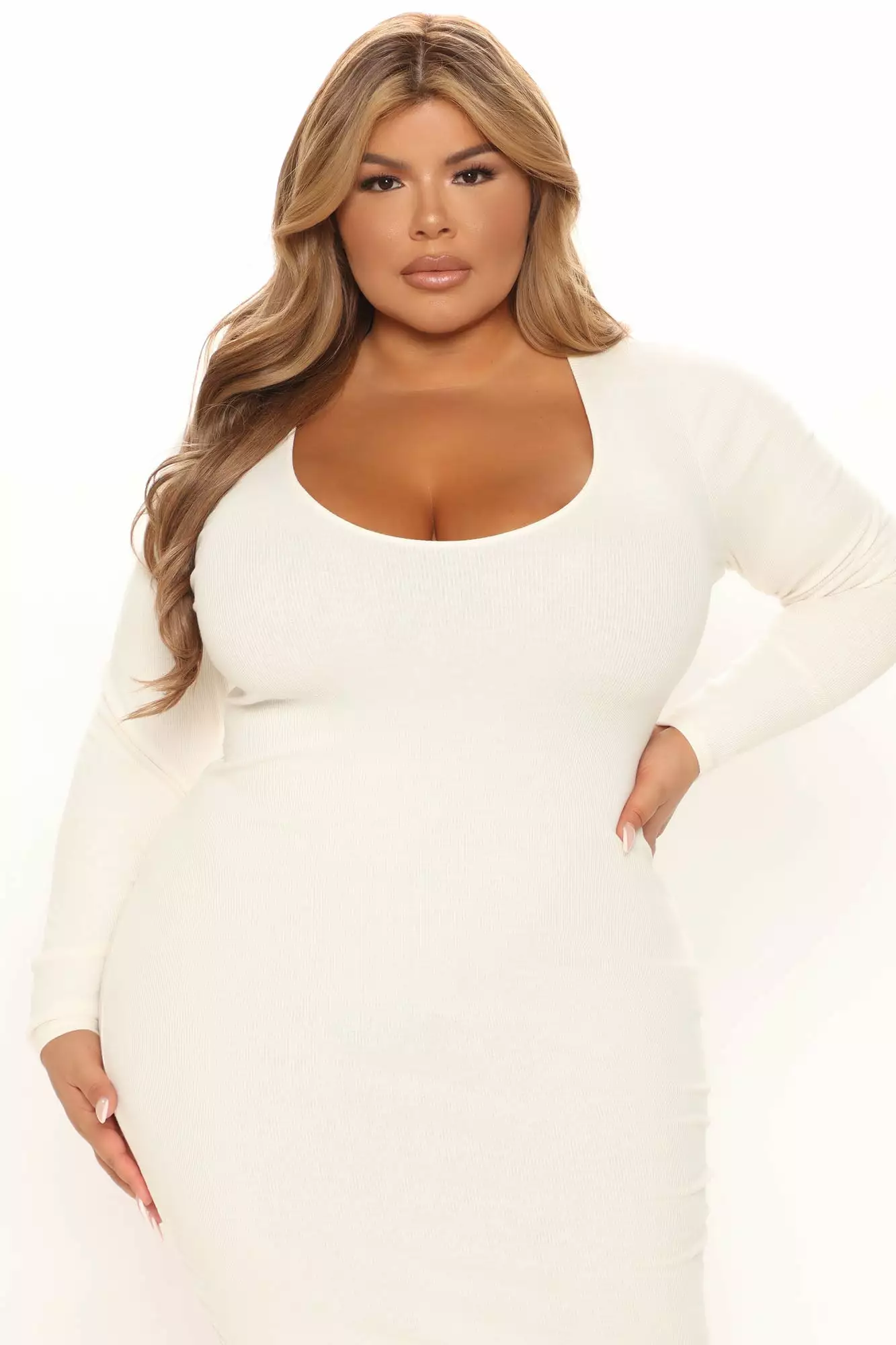 Fashion Nova Ramona Ribbed Midi Dress – Cream