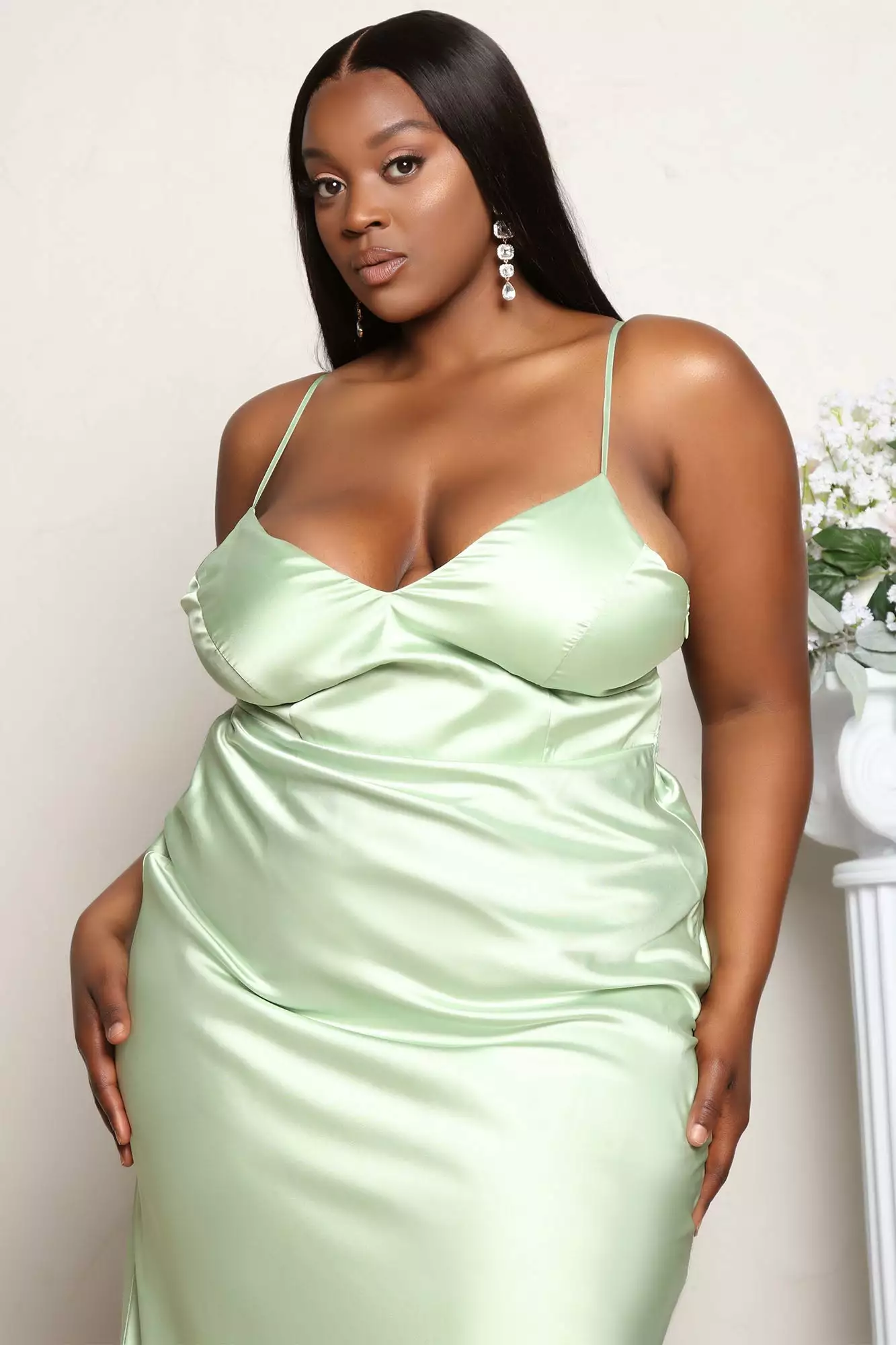 Fashion Nova Right By Your Side Satin Dress – Chartreuse