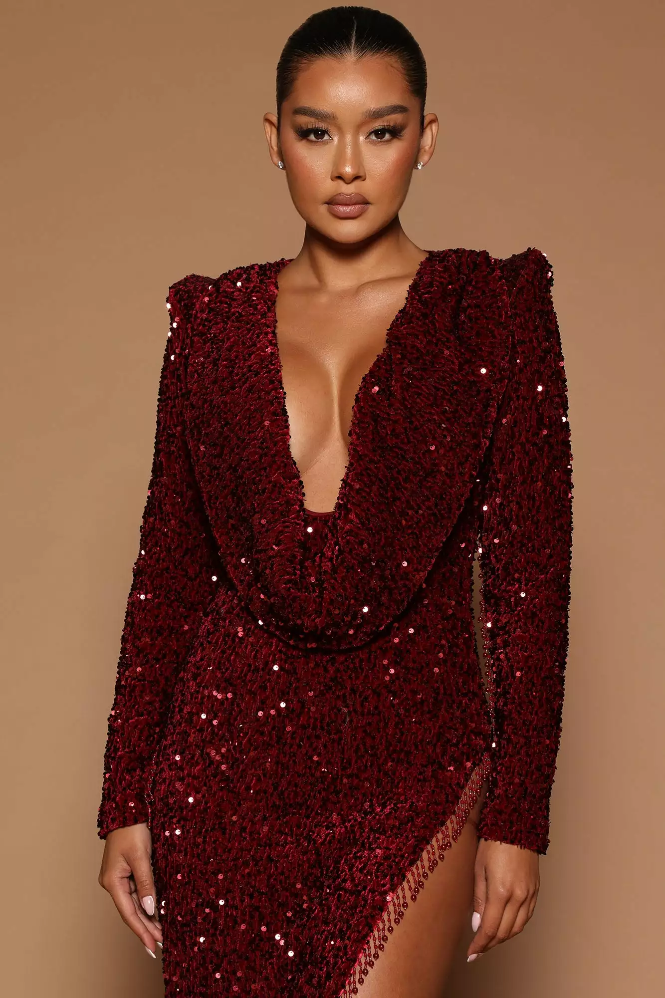 Fashion Nova Rihanna Sequin Maxi Dress – Burgundy