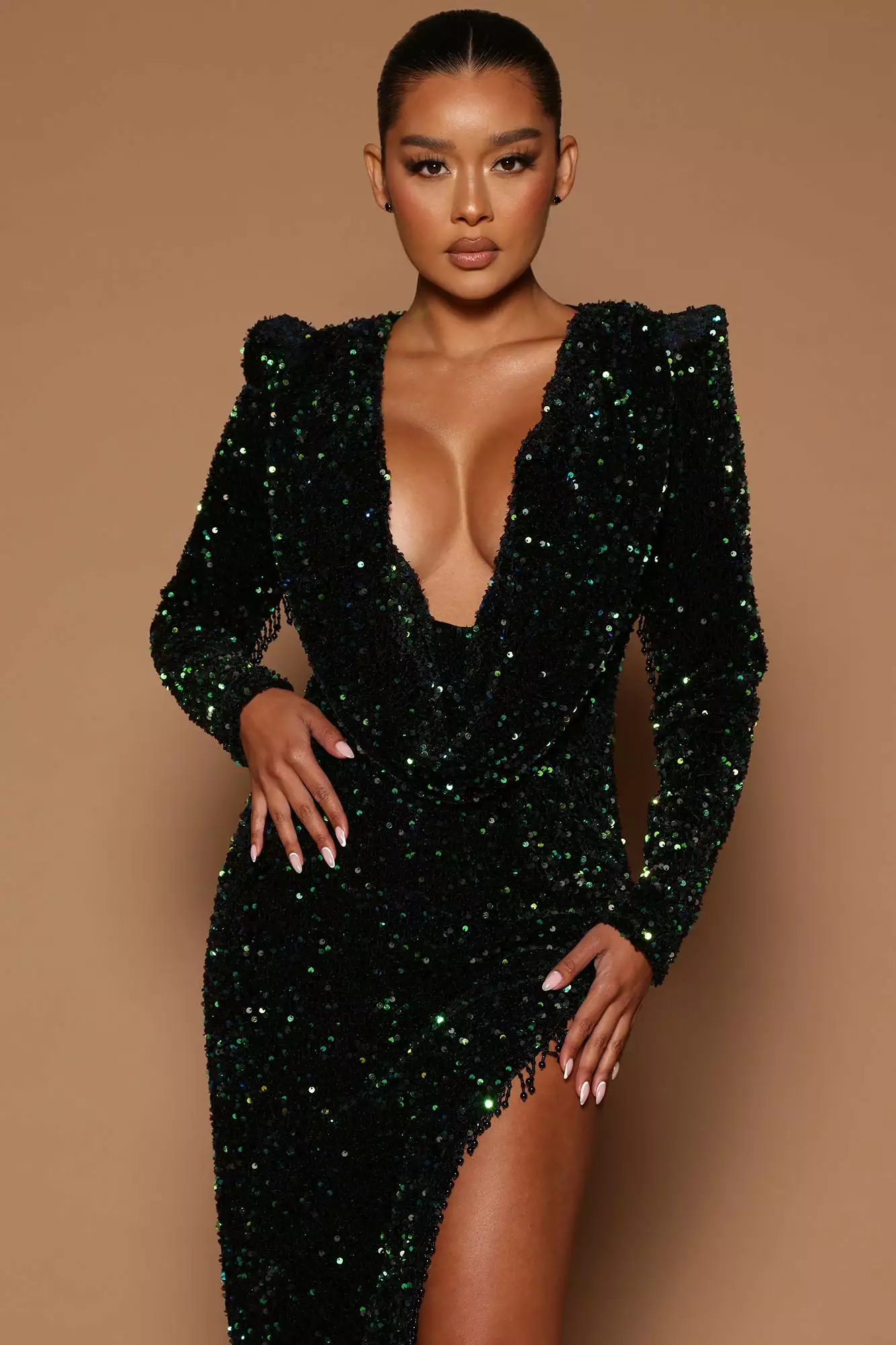 Fashion Nova Rihanna Sequin Maxi Dress – Green/combo