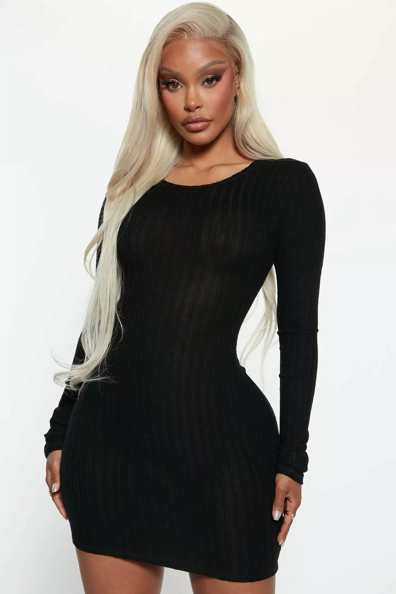 Fashion Nova Rita Ribbed Mini Dress – Black