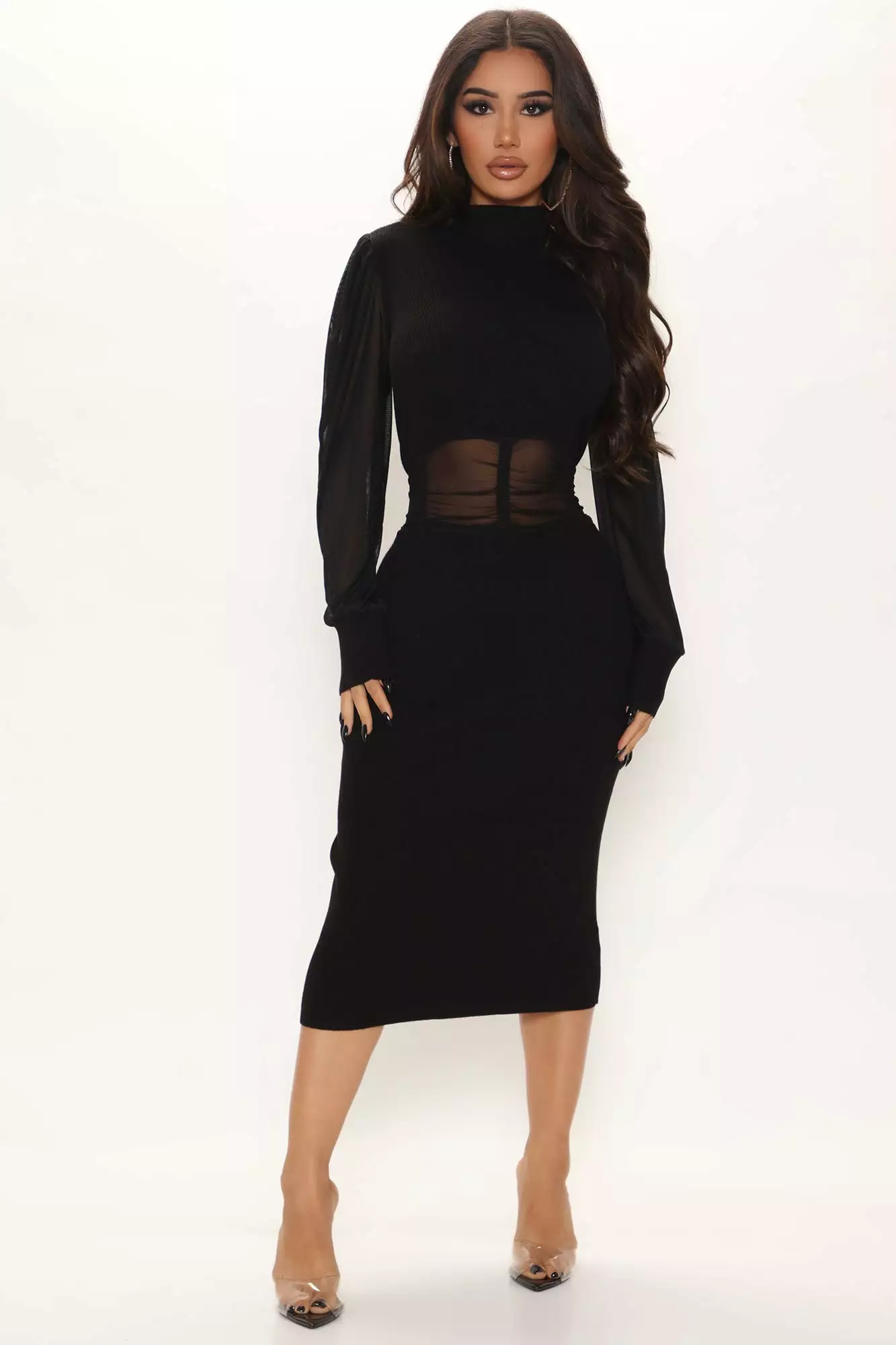 Fashion Nova Ruching To You Sweater Midi Dress – Black
