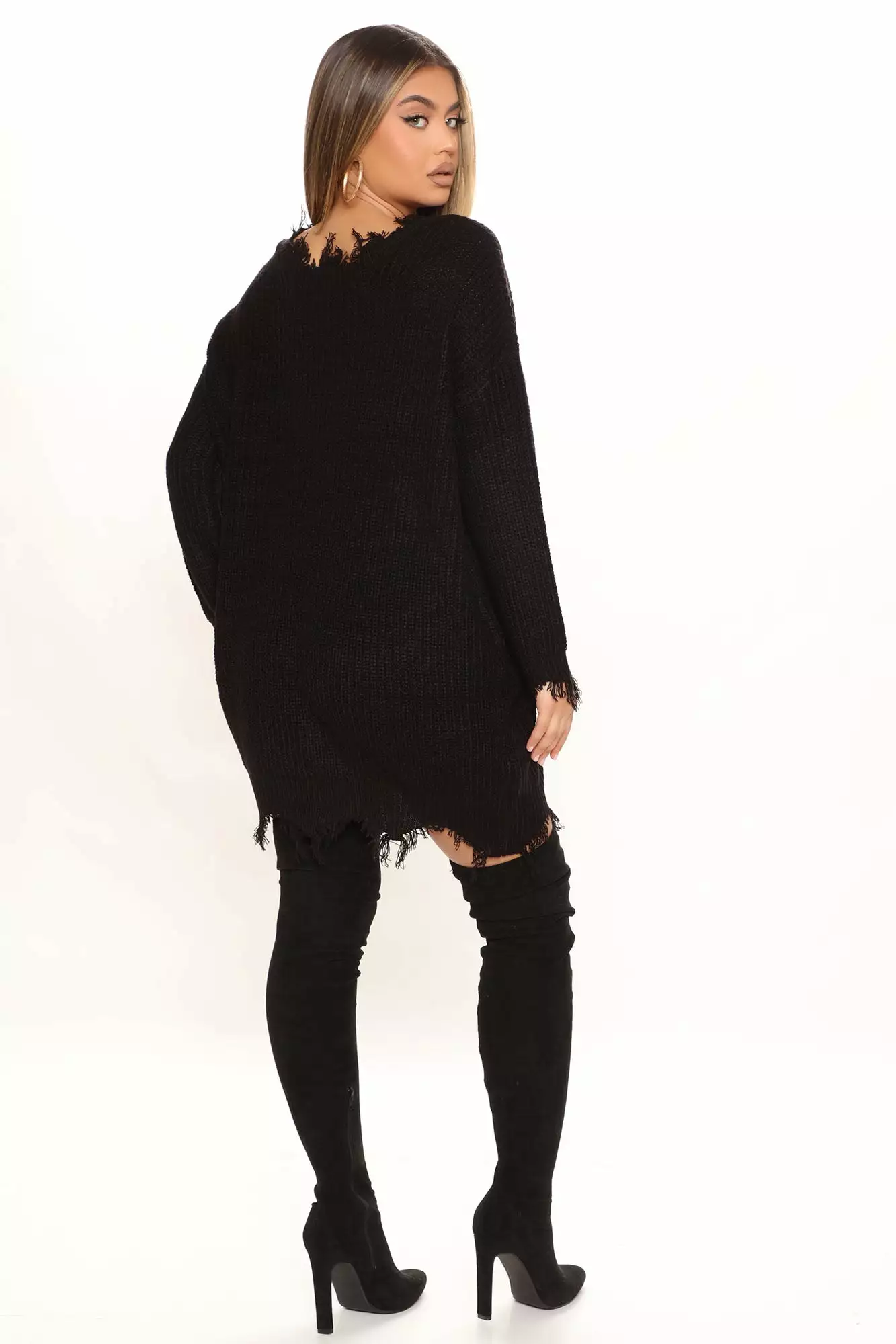 Fashion Nova Sarabeth Sweater Mini Dress – Black