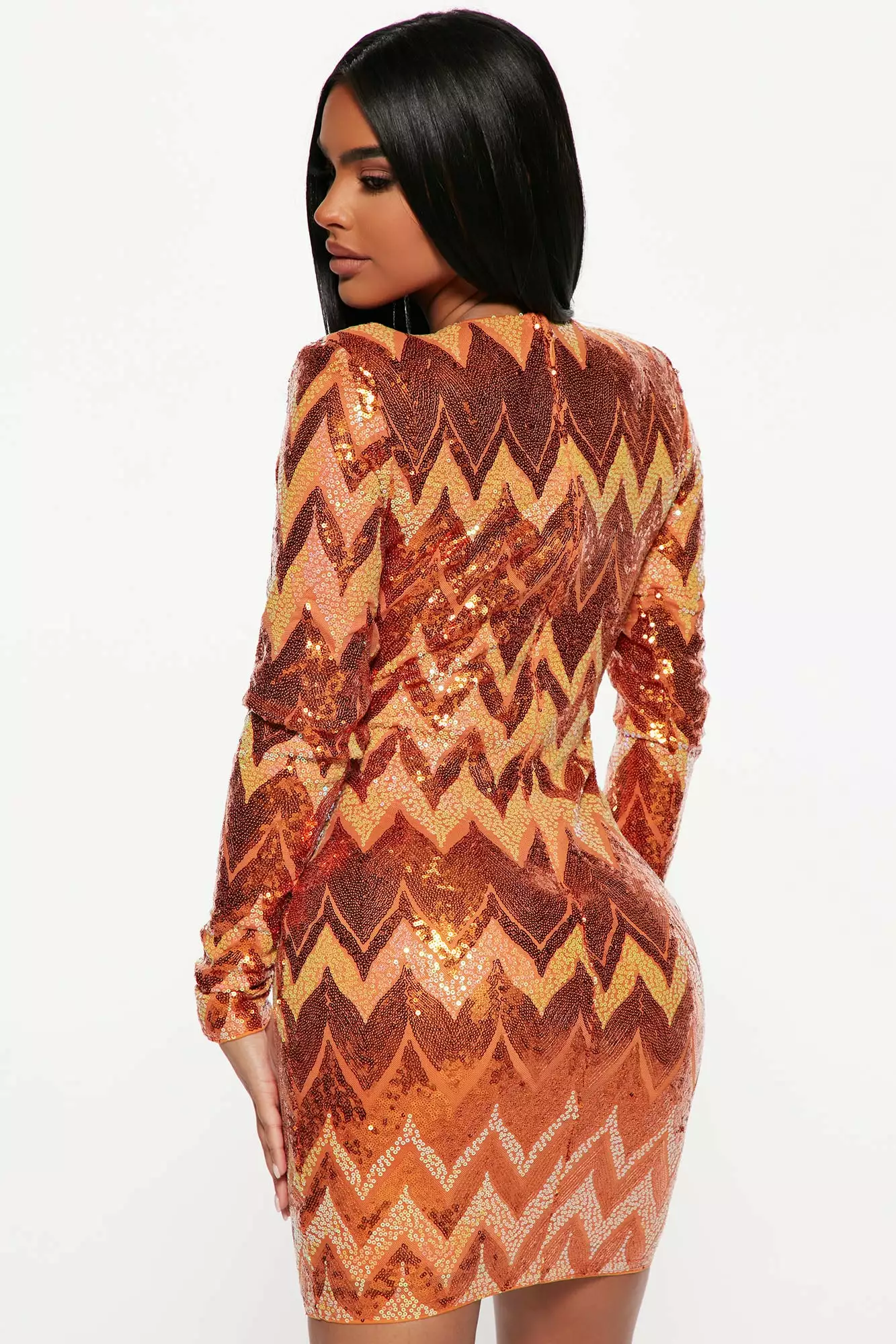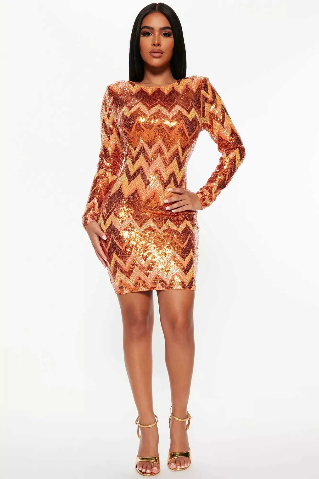 Fashion Nova Sarita Sequin Mini Dress – Orange