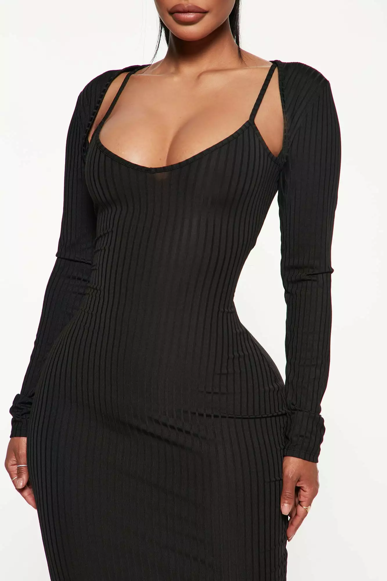 Fashion Nova Sasha Ribbed Midi Dress – Black