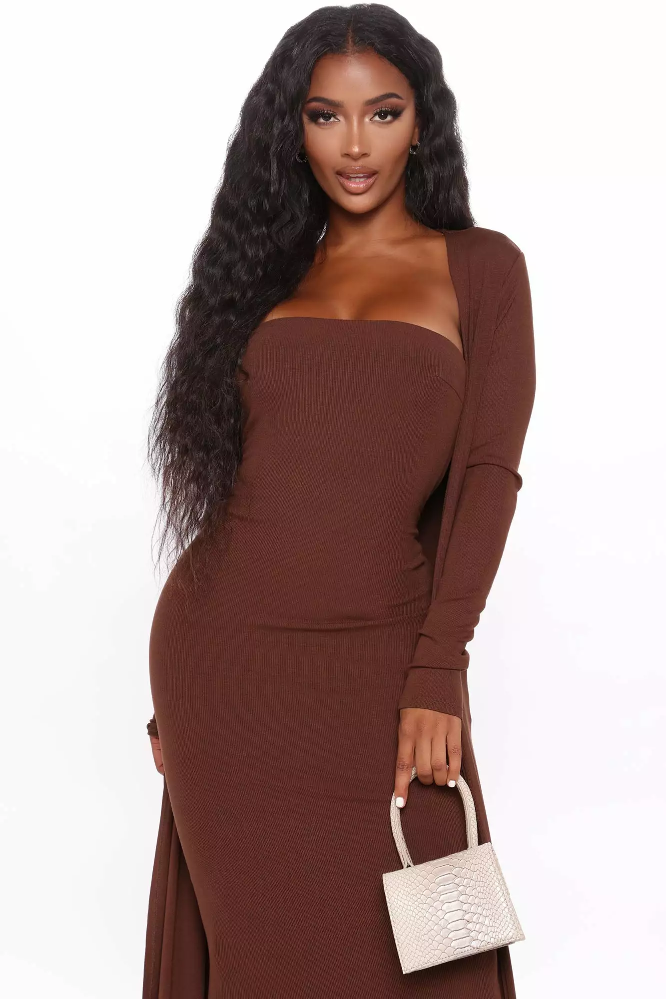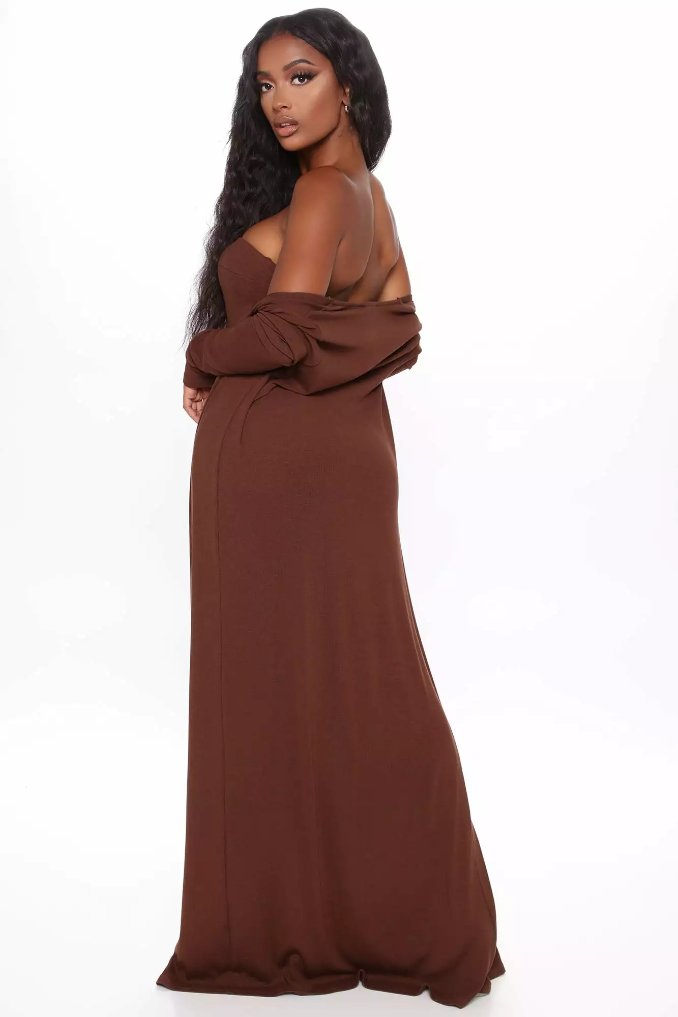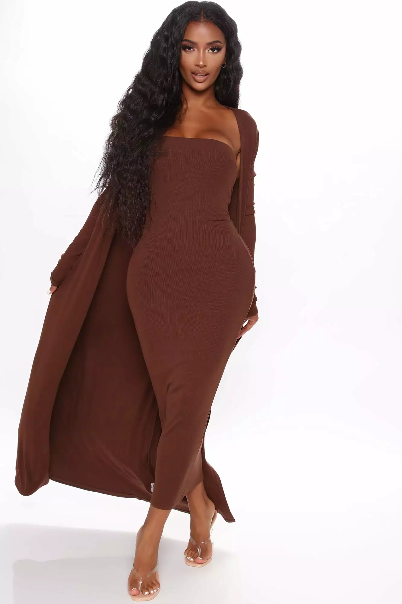 Fashion Nova Satisfied Ribbed Maxi Dress Set – Brown