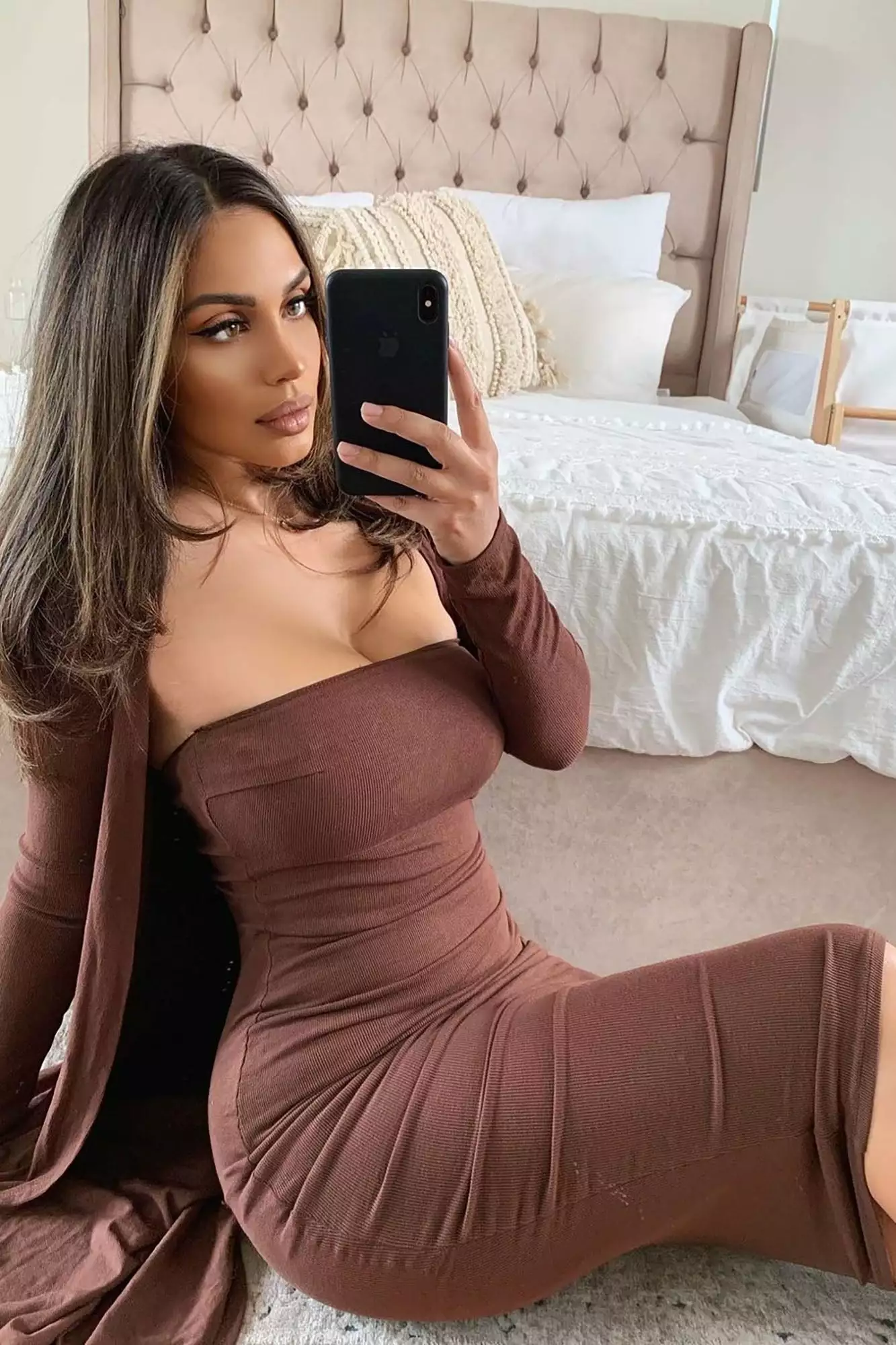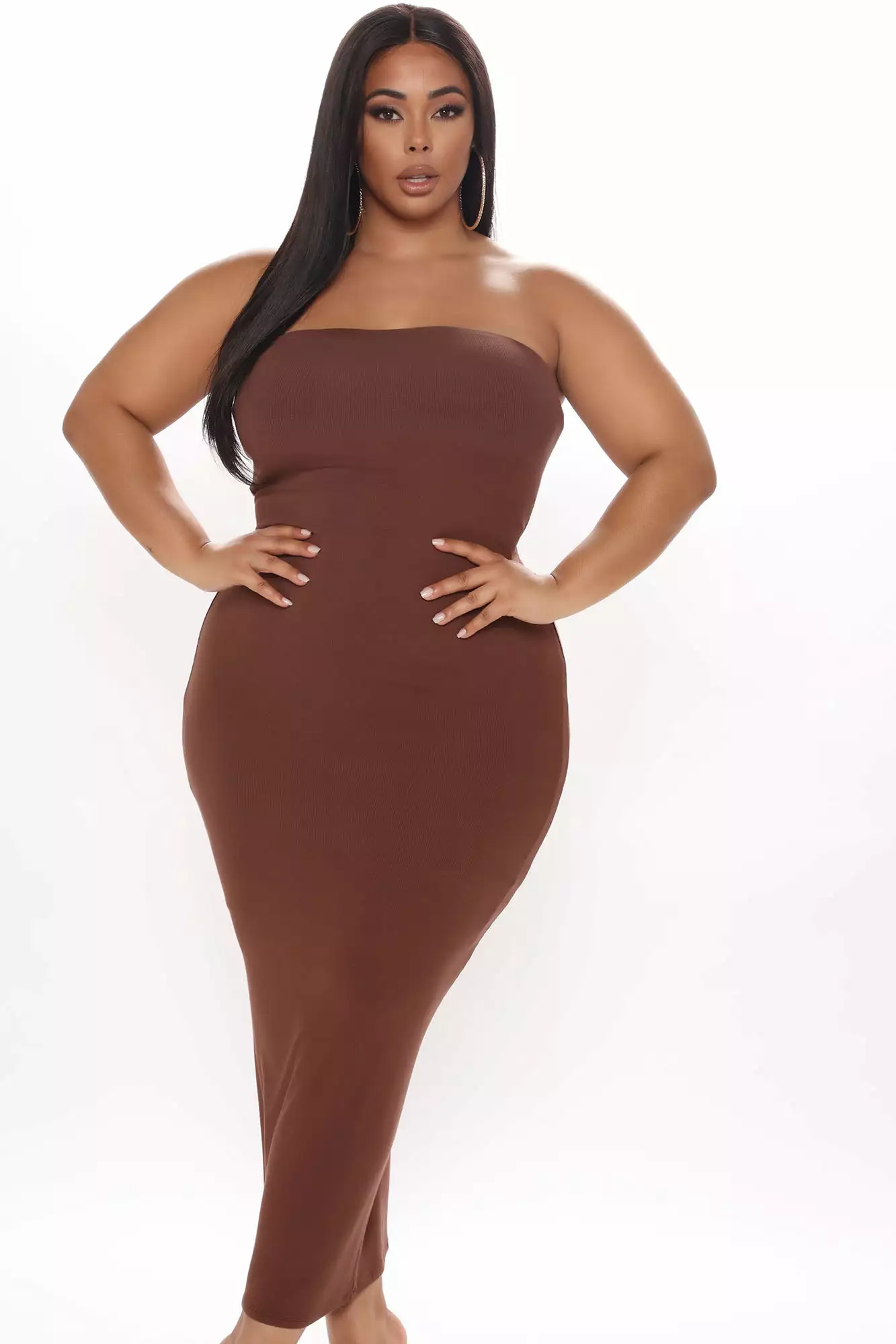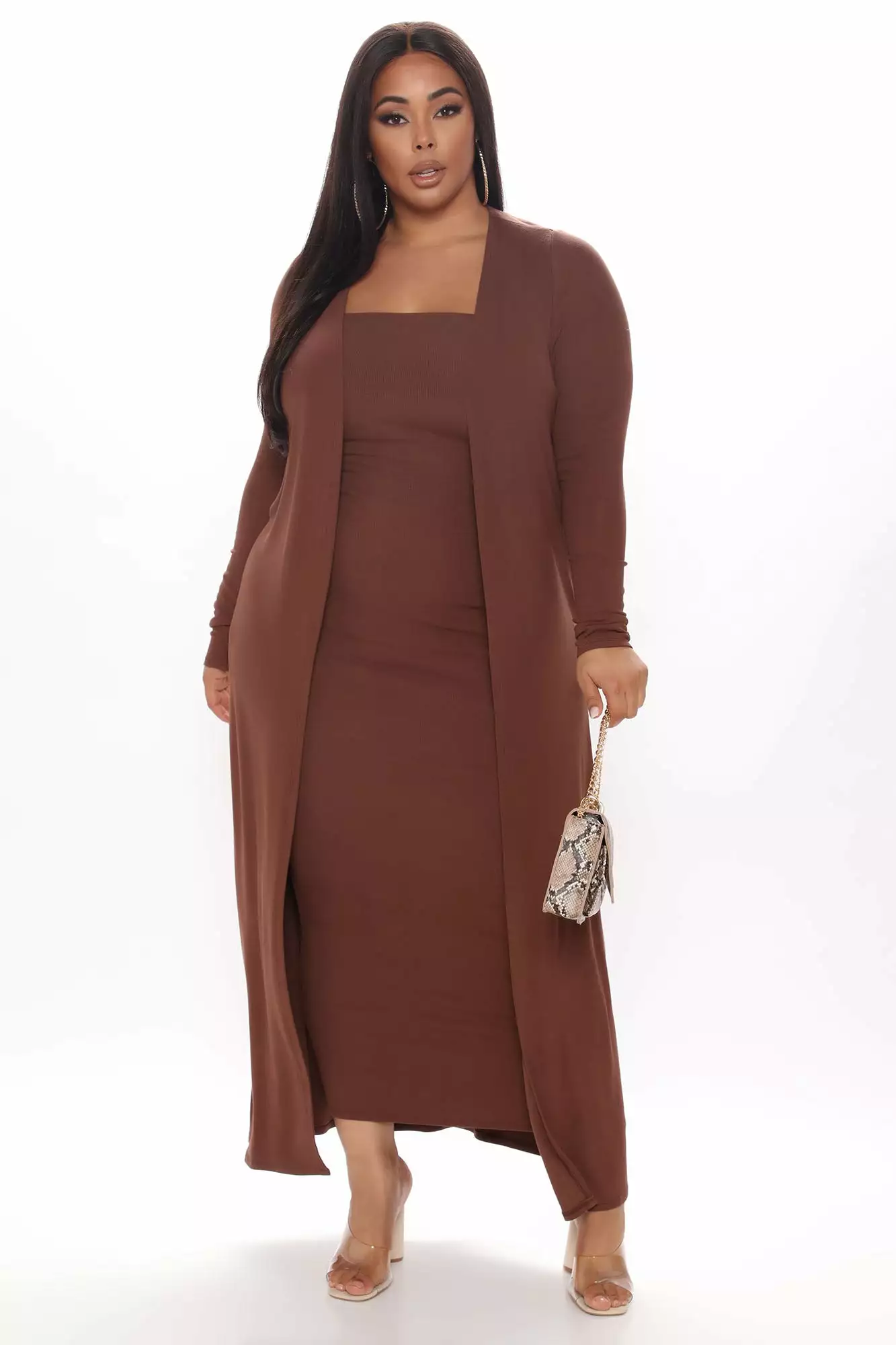 Fashion Nova Satisfied Ribbed Maxi Dress Set – Brown